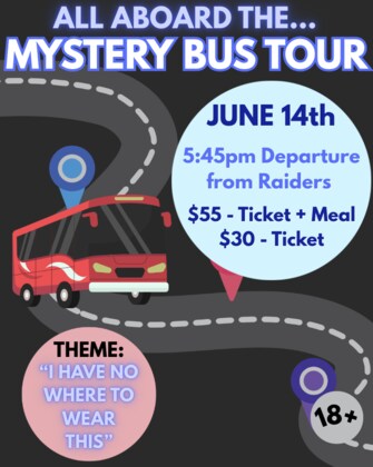 Mystery bus is here... When: 14th of June  Time: 5:45pm SHARP departure  Tickets: Meal ticket includes a parmi or schnitty (if you have a dietary requirement and need a meal we can arrange this), normal ticket includes BUS ONLY.  Theme: "I have NO where to wear this"