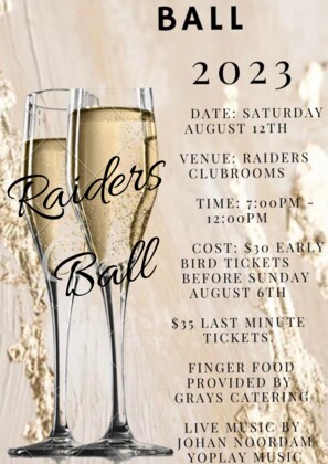 Join us for our Annual Raiders Ball 2023 - Get in early for the $30 early bird tickets before 6/8. (Please note - ALL 18/U attending MUST have a responsible adult / guardian in attendance or will not be admitted) Live entertainment from 'Yoplay Music' and and finger food by 'Leah Gray Catering' included. Saturday August 12th Birallee Function Centre 7pm - 12pm Early Bird Tickets $30 - Tickets $35 from the 7/8 Semi Formal