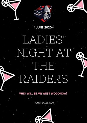 Come and join us at Raiders for a night celebrating all the lovely ladies in our community.    Enjoy a night of entertainment and service provided by the men of Raiders.    Tickets include finger food, lucky door prizes, ENTERTAINMENT and the chance to help crown the next Mr West Wodonga.    All ladies from players, volunteers, partners, mums to grandmas are welcomed and encouraged.    7pm start at Raiders function room! See you there 🤩   Strictly an 18+ event.