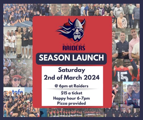 Join us at Wodonga Raiders for the 2024 Season Launch. HAPPY HOUR FROM 6-7PM Pizza and entertainment included.